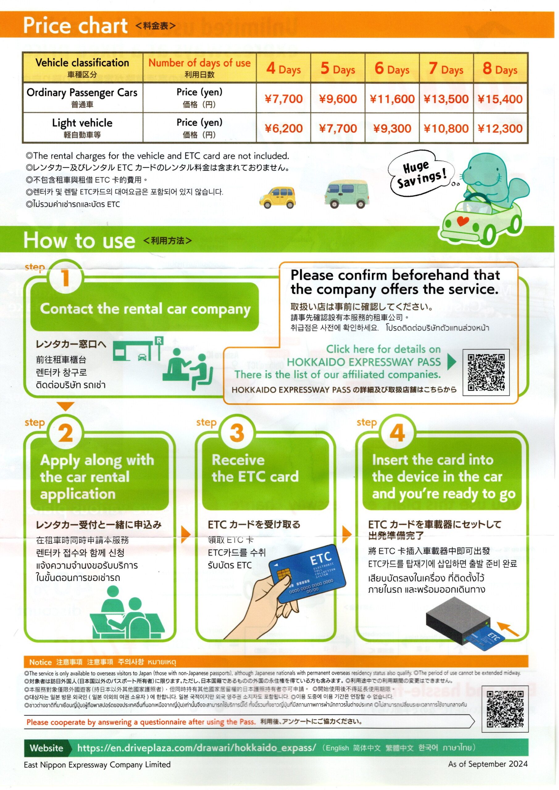 More details ⇒http://www.driveplaza.com/trip/drawari/hokkaido_expass/en.html